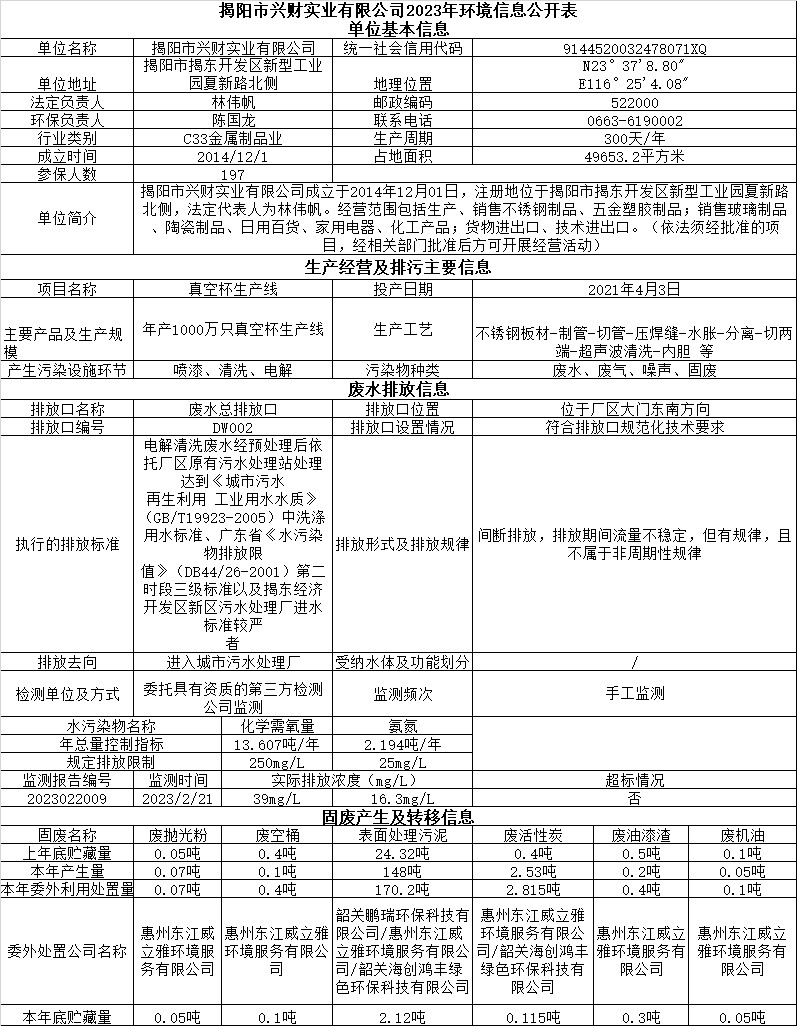 2023年环境信息公开表