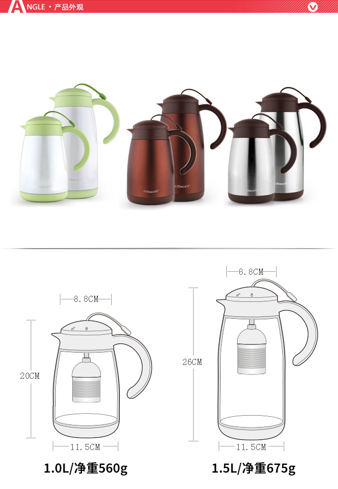 1.0L/1.5L真空茶壶