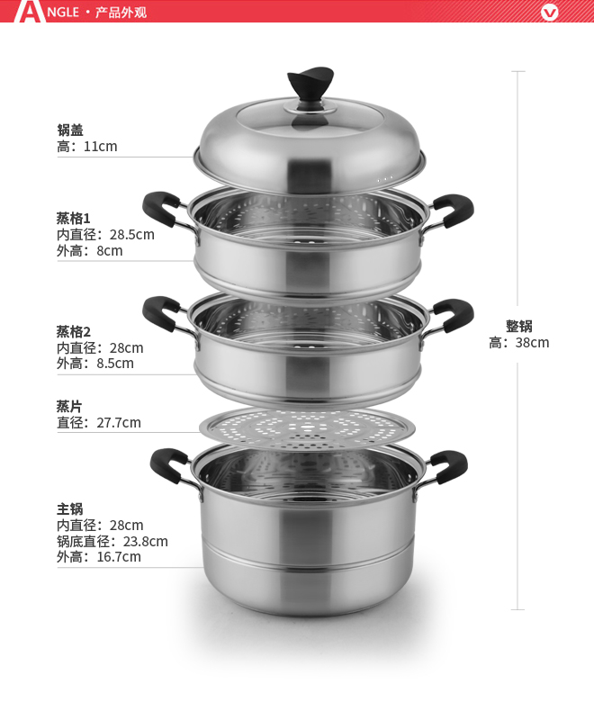 28cm三层复底蒸锅