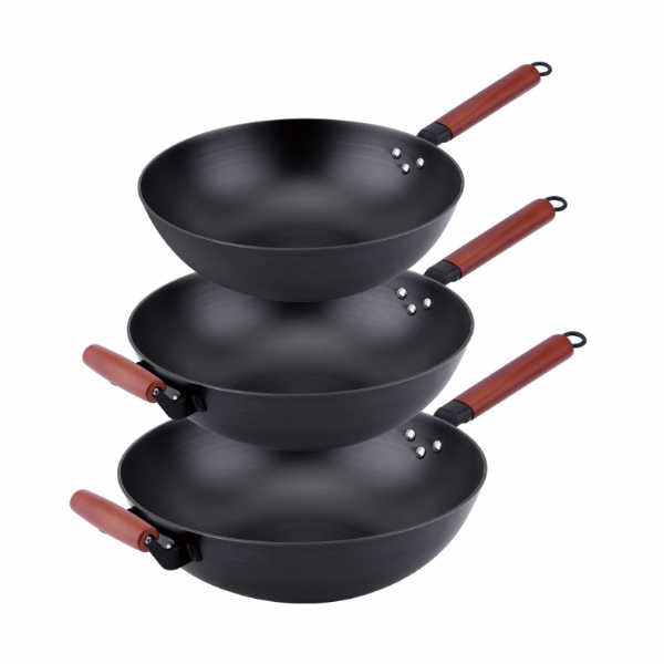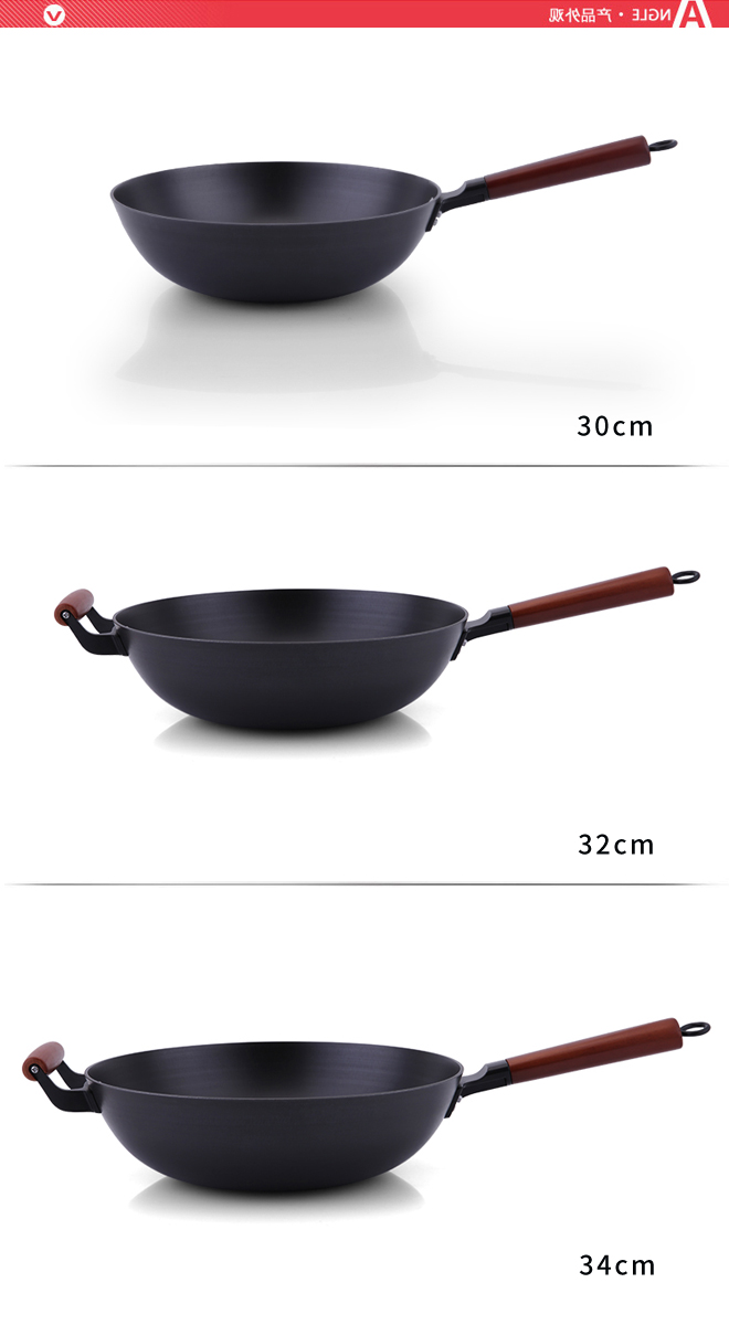实木柄精铸炒锅